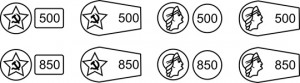 Для палладия – клеймо в форме пульки и следующие виды проб.