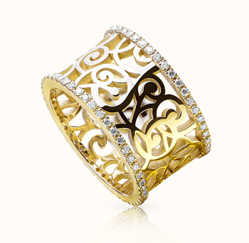 фото: золотое кольцо, вес 8 грамм, металл желтый, инкрустация бриллиантами: 90 бриллиантов круглой огранки – общий вес 0,6 карата. Стоит 244 500 ₽. Продавец ArtAuro.