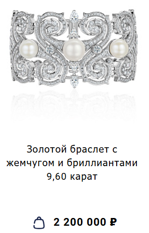 Фото: Золотой браслет с бриллиантами и жемчугом. Белое золото 585 пробы. Вес изделия 101,95 гр. Размер 17. Бриллианты 514 шт, весом 12,91 ct. Жемчуг 3 шт, размером 10,5-12,0 мм. Стоимость 2 200 000 рублей.